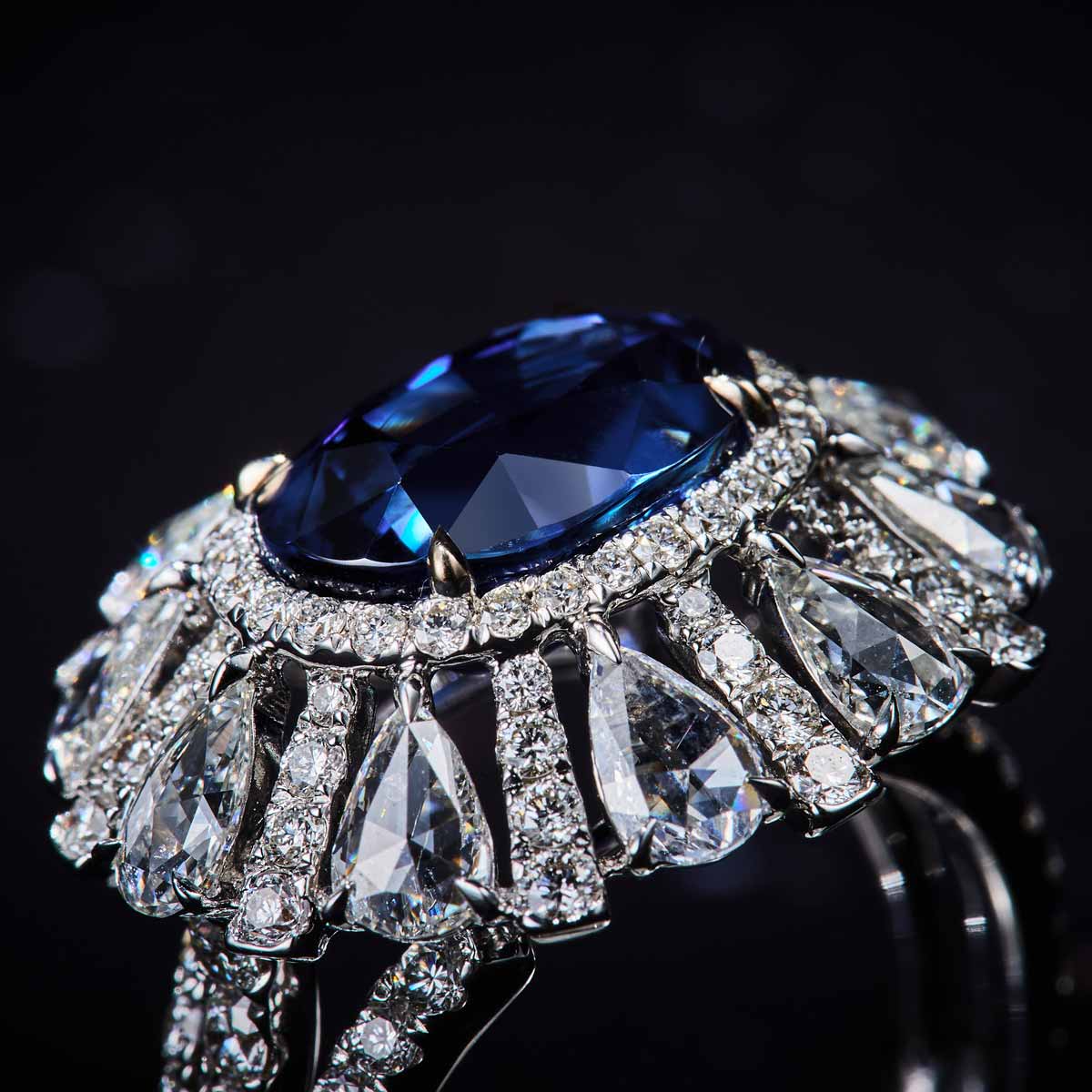 馬達加斯加(GRS)藍寶石象徵永恆與尊貴,鑽石如繁星環繞,映襯深藍色澤,綻放神秘星辰之美。